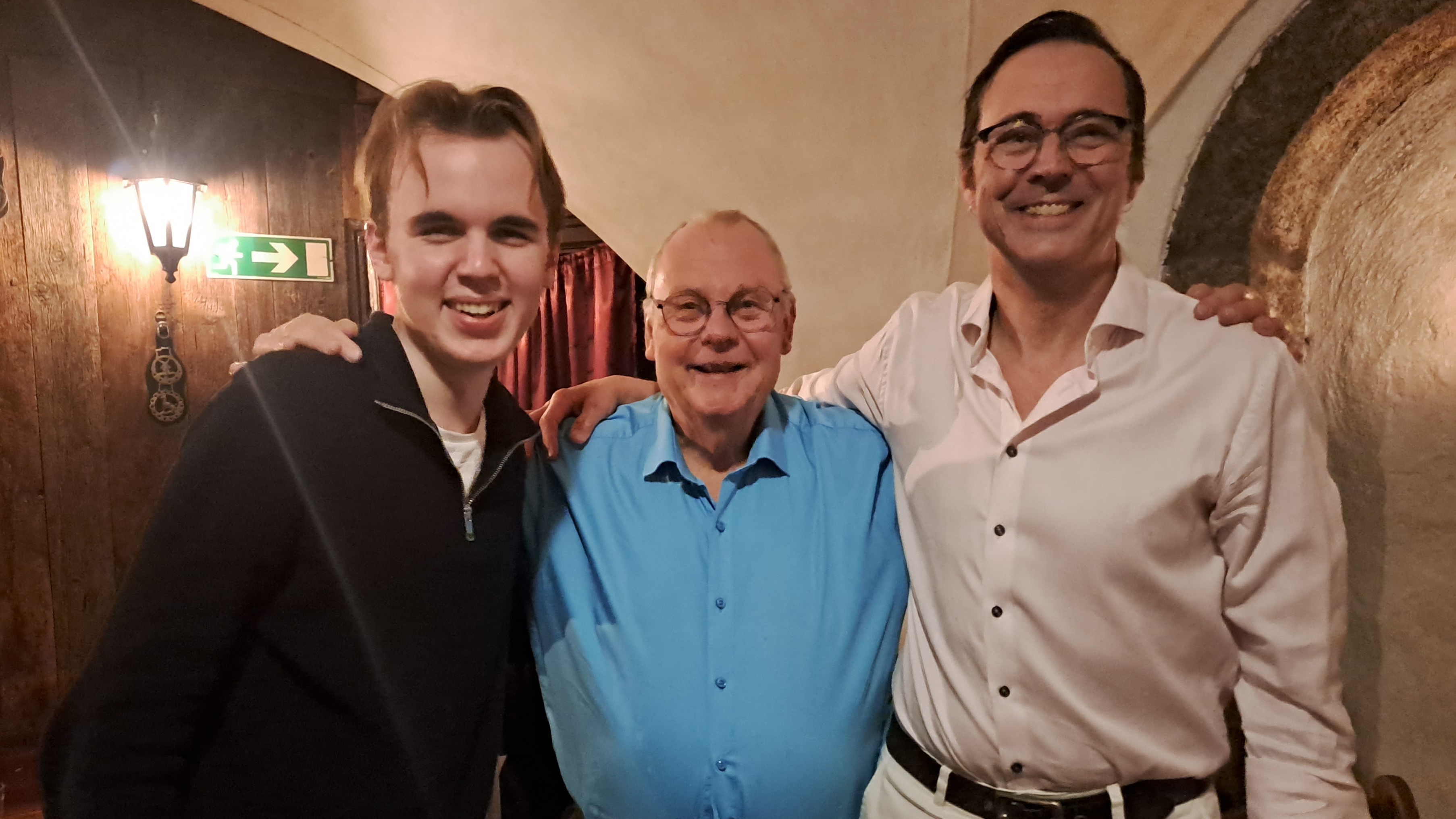 Albin Berglund Henell, turneringsvinnare. Curt Andersson, meste jubilaren. Kenneth Holm, klubbens ordförande. Foto: Lasse Linusson