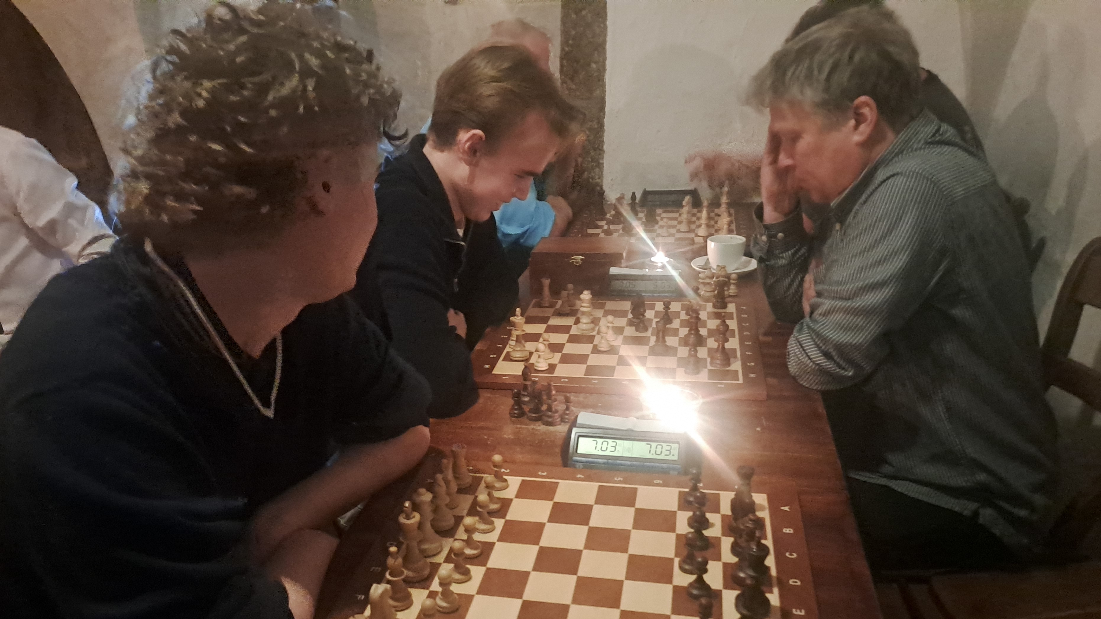 Pubmiljön gav förvisso en annorlunda inramning åt spelet. Om det nu var den dämpade belysningen som var orsaken till att den mer, ehm, skumögda delen av klientelet satte bort en och annan pjäs är ovisst; men i vart fall blev det ytterligare en vinst för den yngre generationen: Albin Berglund Henell vann på 4/5. Det var dock ganska spännande in i det sista -- inför sista ronden fanns fyra möjliga vinnare.